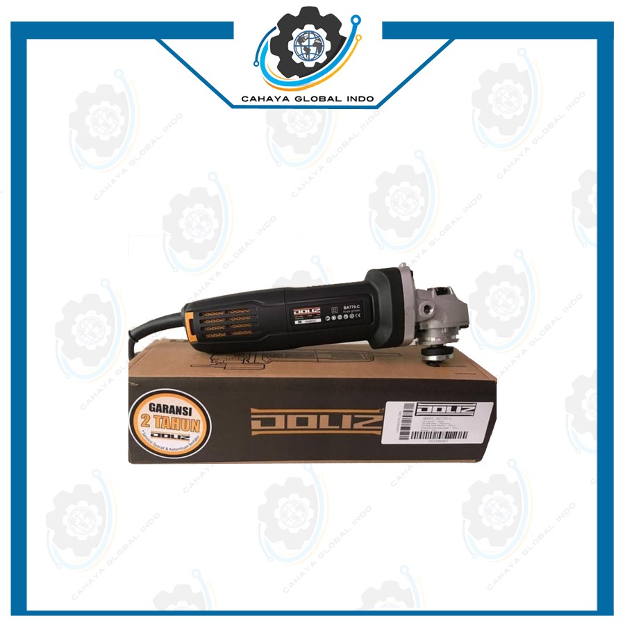 GRATIS KACAMATA GOOGLE PROMO TERBATAS, DIJAMIN ORIGINAL DOLIZ MURAH, GARANSI 100% RESMI , TANGAN PERTAMAMesin Gerinda Tangan Angle Grinder Side Switch BA 770C Doliz BA770-CUntuk ukuran mata 4''' (100 s/ 105 mm).Watt 720 wattRpm : 12.000Spindle : M10Inner hole of grinding wheel: 16mmKeunggulan :- Bentuk body slim/ langsing sehingga lebih nyaman di genggam- Tenaga yang dihasilkan lebih besar dibanding dengan merk lain dengan spesifikasi watt dibawahnya- Terdapat fitur penyaring debu pada bagian carbon brush agar kotoran dapat tersaring dan tidak masuk ke dalam komponen mesin selama pengoperasian- Harga murah dan terjangkauGARANSI RESMI 1 SPARTPART TAHUN & SERVIS 2 TAHUN LANGSUNG KE SERVICE CENTER