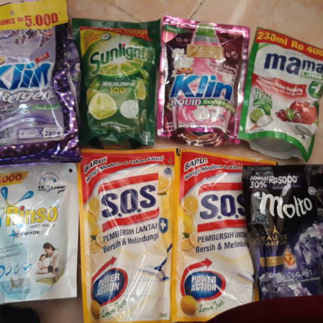 Serba 5000/pcsSilahkan ditulis dicatatan yg mau di order apa aja.Pilihan barang nya:SosSunlighWipolMoltoRinso cairSoklin softergen bubukSoklin liquidMama lemonSup