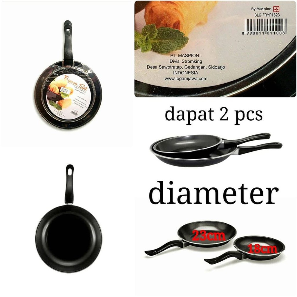 MASPION FRYINGPANDapat 2 teflonEcer 65.000Harga diatas adalah harga per set1 set isi 2 teflonDiameter 23 dan
