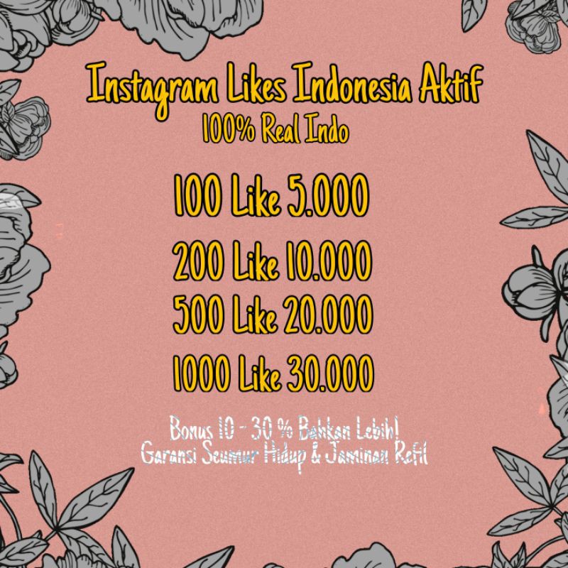 ! !PROMO TERBATAS, DAPATKAN FOLLOWERS DENGAN HARGA MIRING SAAT INI JUGA!__________________________________________________________________________________________________________________1️⃣ Checkout Seperti Biasa2️⃣ Kirimkan Link/Tautan dari Post yang ingin di naikkan Like nya ke Admin3️⃣ Pastikan Akun tidak di Private & Foto jangan di Hapus.Kenapa Harus Membeli Like di Jasa Suntik Followers?1️⃣ Meningkatkan Kepercayaan Akun Olshop mu di Mata Pembeli2️⃣ Meningkatkan Engagement3️⃣ Pembelian Minimal 1000 Likes, Dapat Dibagi Untuk 4 Post MaxLIKERS DIJAMIN 100% INDO DAN AMAN UNTUK INSTAGRAM, GARANSI DROP LIKES&K : - AKUN JANGAN DI PRIVATE.- SELAMA ORDER SEDANG DI PROSES TIDAK MENERIMA Reffund/Pembatalan- MEMBELI = MEMBACA = SETUJU.Untuk Pembelian Followers Bisa Cek Etalase kami ^^ Selamat Berbela