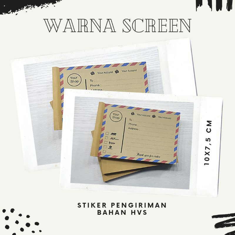 LABEL PENGIRIM ONLINE SHOPready stok banyakUKURAN : 10x7,5 cmBAHAN : HVS 70g1 BUKU ISI : 50 lembar HASIL CETAK : WARNABISA ISI DATA TOKO SENDIRIDESING SUDAH SIAP SESUAI DESKRIPSI GAMBAR TIDAK BISA DI RUBAH.1kg muat 25 bukusangat mudah di gunakan, untuk membantu anda dalam penulisan alamat. tanpa harus memotongtinggal sobek model seperti buku/nota.READY STOK:#STIKER PENGIRIMAN TDATA TOKO SENDIRI#STIKER PENGIRIMAN UNTUK DROPSH