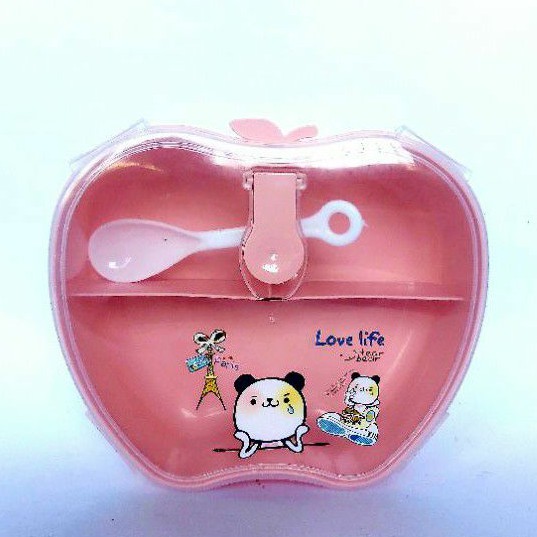 -bahan tebal-free sendok makan-warna lembut -tutup bening dengan gambar lucu -terdiri dari 3 sekat. 2 sekat kecil untuk tempat lauk pauk, 1 sekat dengan ukuran lebih besar untuk makanan yg lebih banyak-bentuk seperti buah apel-terdapat lubang kecil untuk mengeluarkan uap makanan yg masih panas-ukuran diameter sktr 24 cm tinggi 4,5cm-harga untuk satu pcs yaaa- warna akan dikirim random sesuai stok yg adamakasi