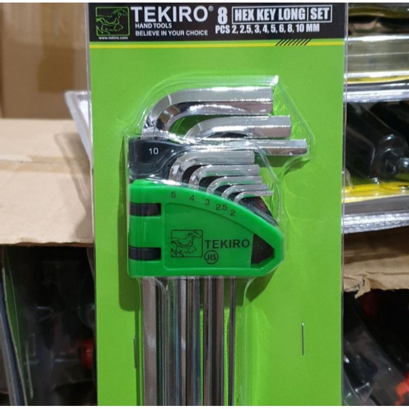 Kunci L Set merk TEKIRO Panjangisi 8 pcsTerdiri dari ukuran:-2mm-2.5mm-3mm-4mm-5mm-6mm-8mm