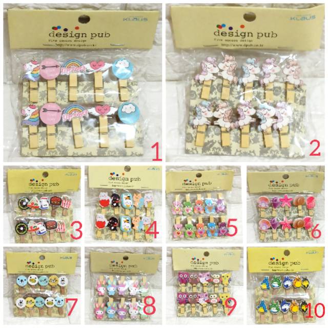 Jepitan kayu , bisa dipakai jepit foto , jepit kertas , dll.Satu pak ada 10 buah.Banyak pilihan gambar, silahkan order...